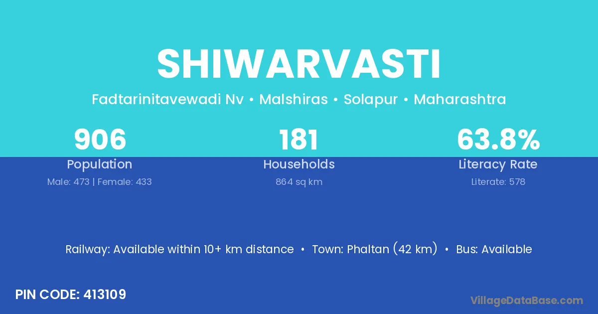 Phaltan (42 km) is the nearest town to Shiwarvasti village for major economic activities and is located approximately 42 km away.