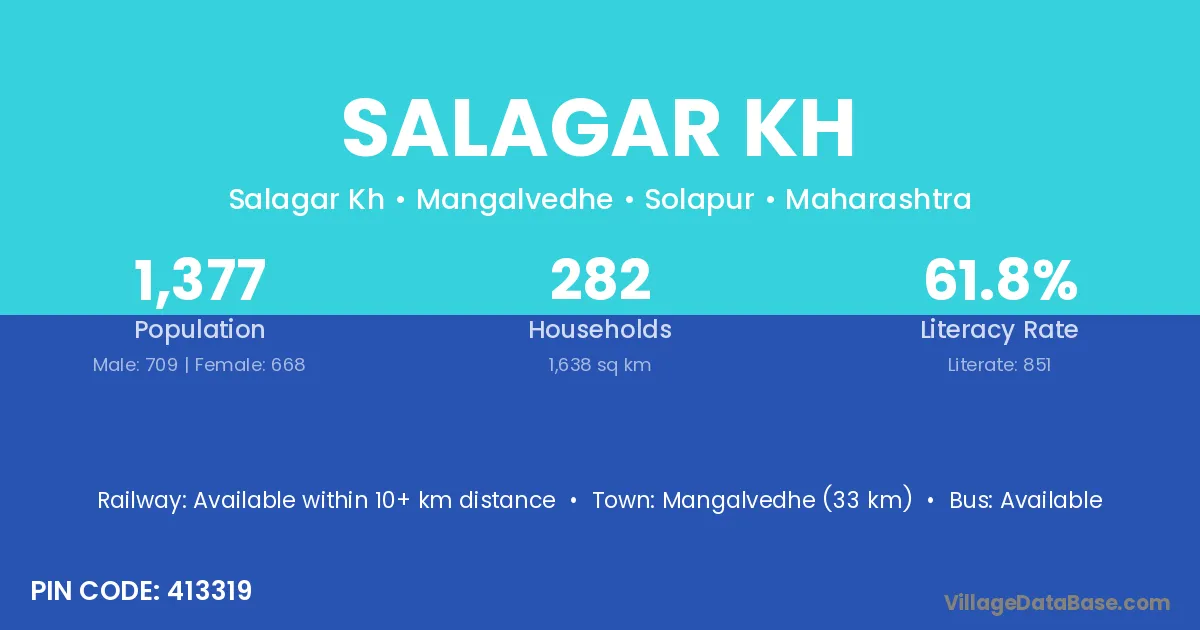 Mangalvedhe (33 km) is the nearest town to Salagar Kh village for major economic activities and is located approximately 33 km away.