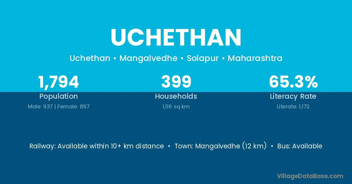 Mangalvedhe (12 km) is the nearest town to Uchethan village for major economic activities and is located approximately 12 km away.