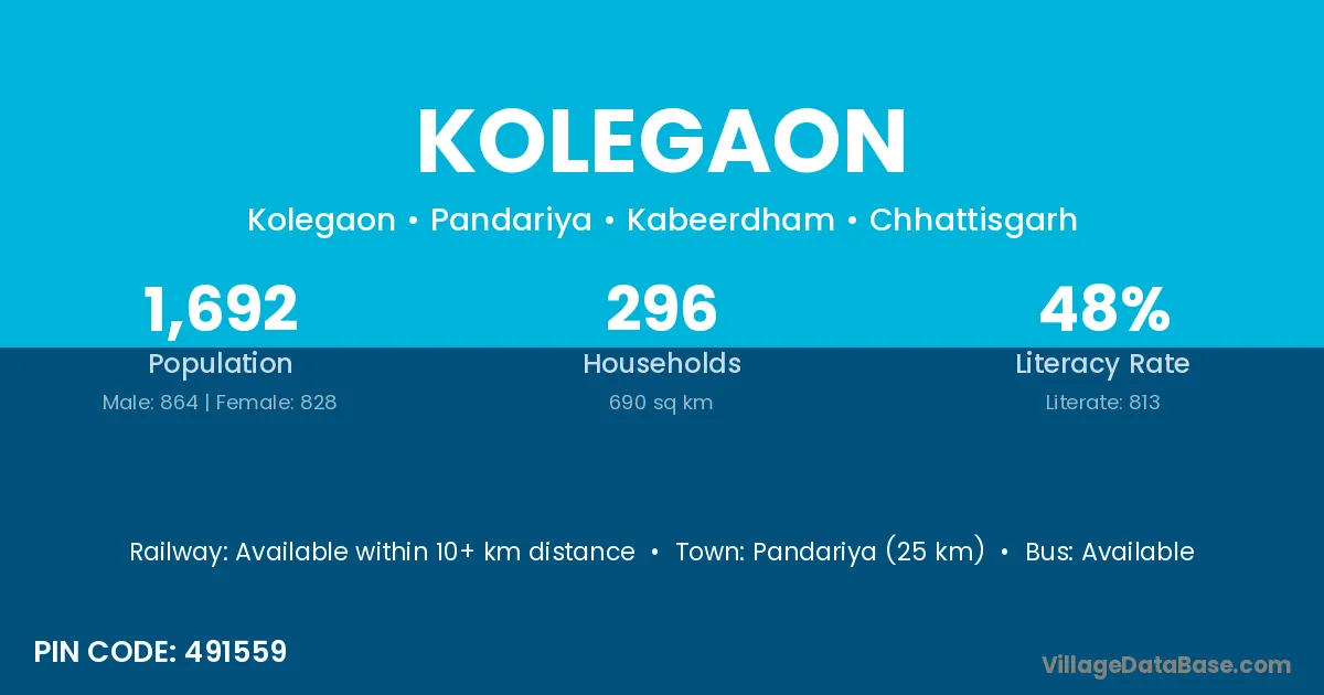 According to Census 2011 information, the village code of Kolegaon village is 413213.