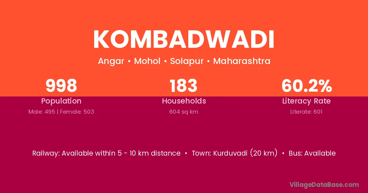 Kombadwadi village has a total population of 998 people, of which 495 are males and 503 are females.