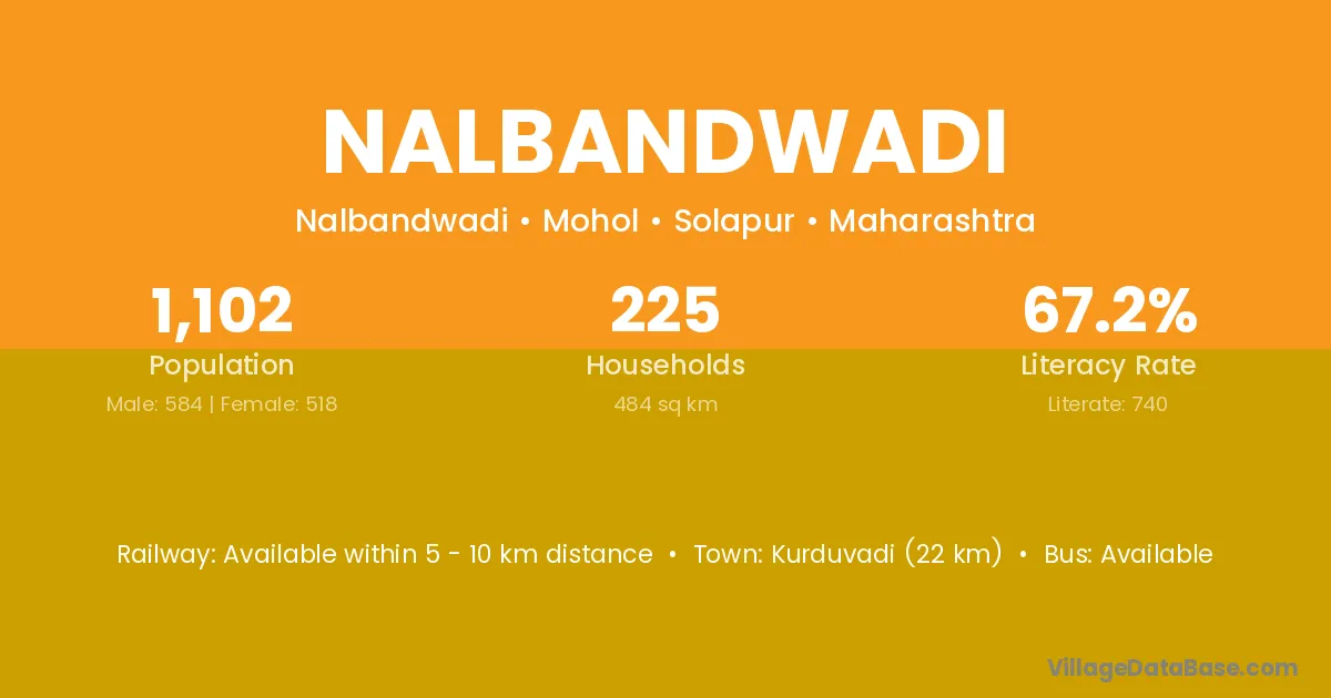 Kurduvadi (22 km) is the nearest town to Nalbandwadi village for major economic activities and is located approximately 22 km away.