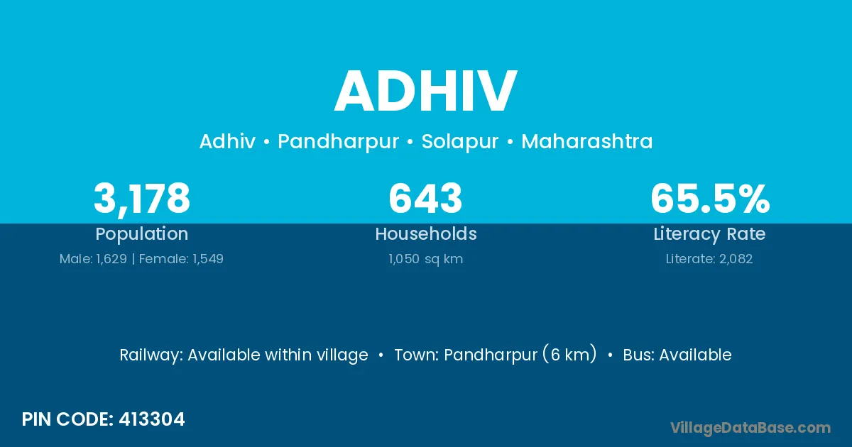 Pandharpur (6 km) is the nearest town to Adhiv village for major economic activities and is located approximately 6 km away.