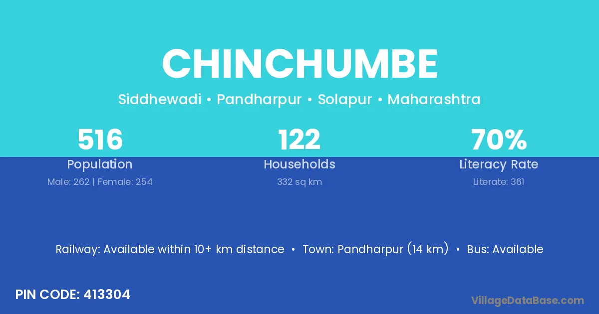 Pandharpur (14 km) is the nearest town to Chinchumbe village for major economic activities and is located approximately 14 km away.