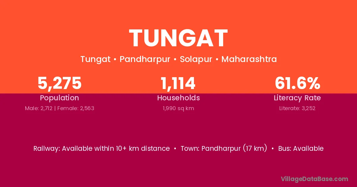 Pandharpur (17 km) is the nearest town to Tungat village for major economic activities and is located approximately 17 km away.