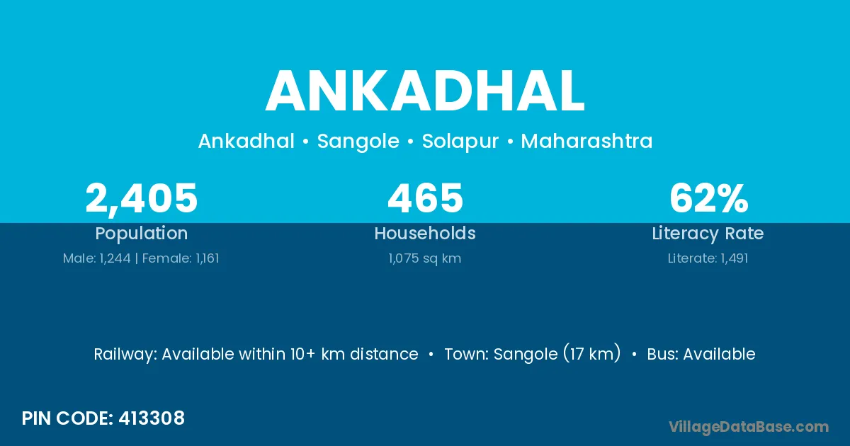 Sangole (17 km) is the nearest town to Ankadhal village for major economic activities and is located approximately 17 km away.