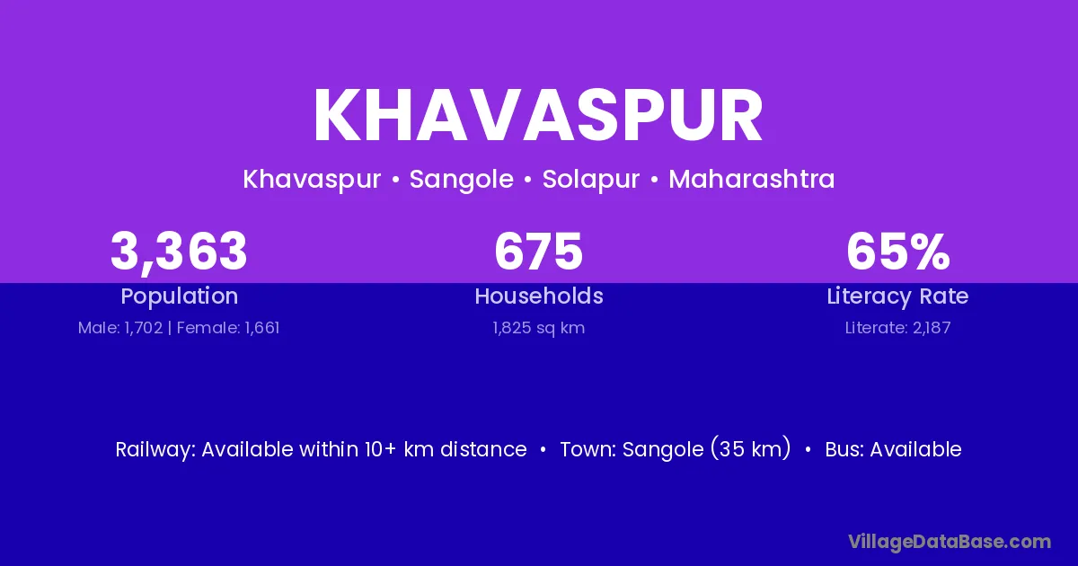 Sangole (35 km) is the nearest town to Khavaspur village for major economic activities and is located approximately 35 km away.