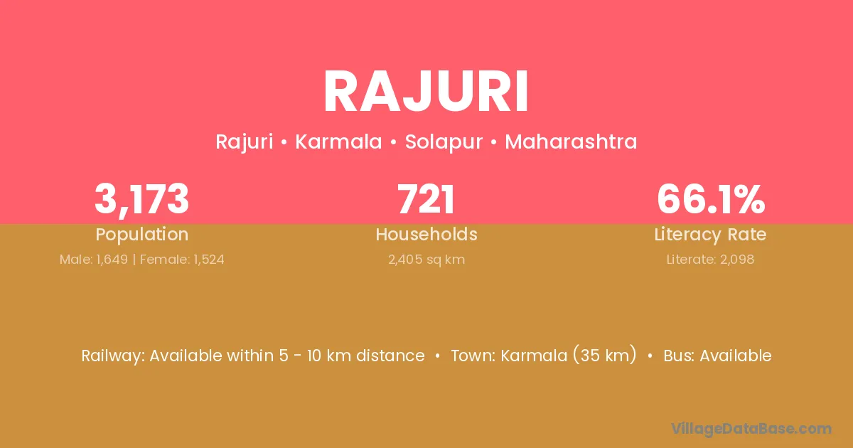 Sangole (25 km) is the nearest town to Rajuri village for major economic activities and is located approximately 25 km away.
