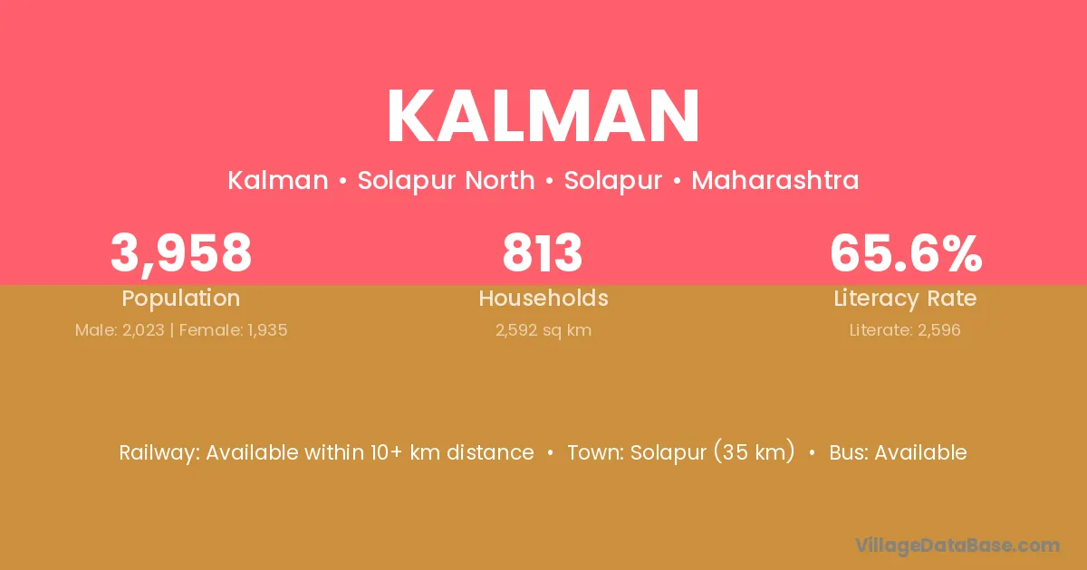 Solapur (35 km) is the nearest town to Kalman village for major economic activities and is located approximately 35 km away.