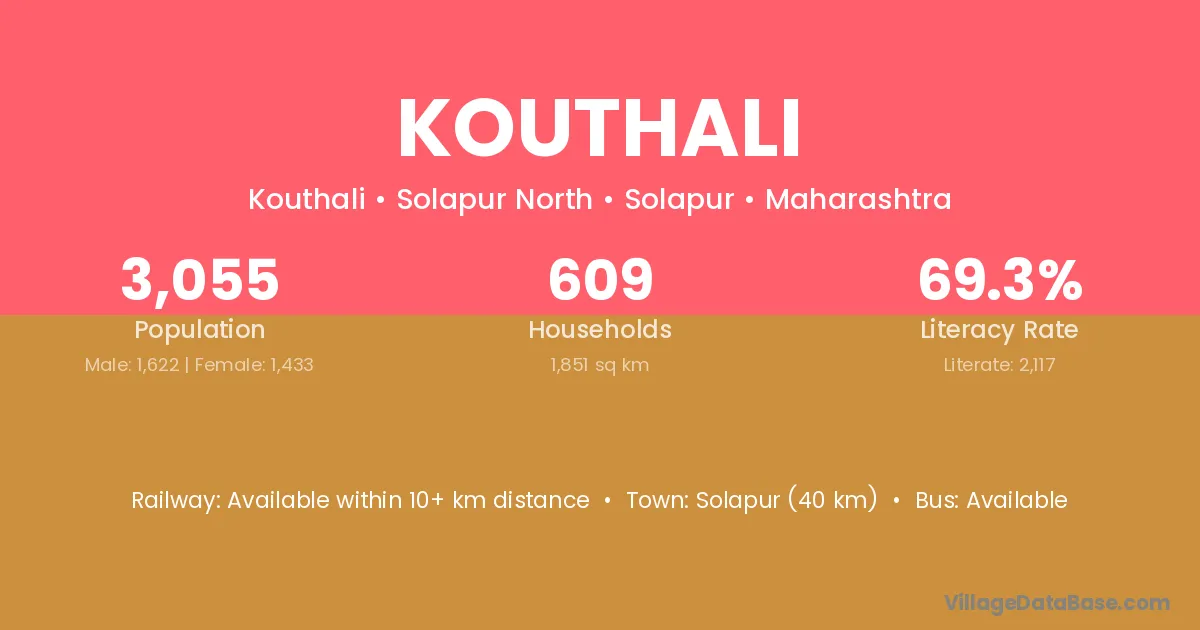 Solapur (40 km) is the nearest town to Kouthali village for major economic activities and is located approximately 40 km away.