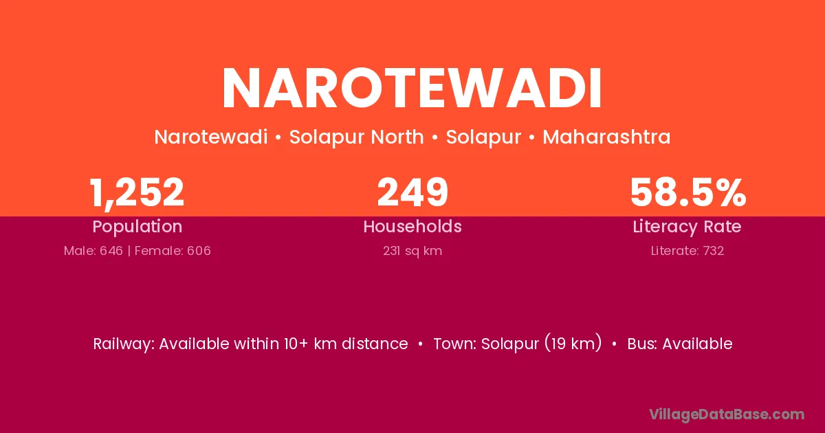 Solapur (19 km) is the nearest town to Narotewadi village for major economic activities and is located approximately 19 km away.