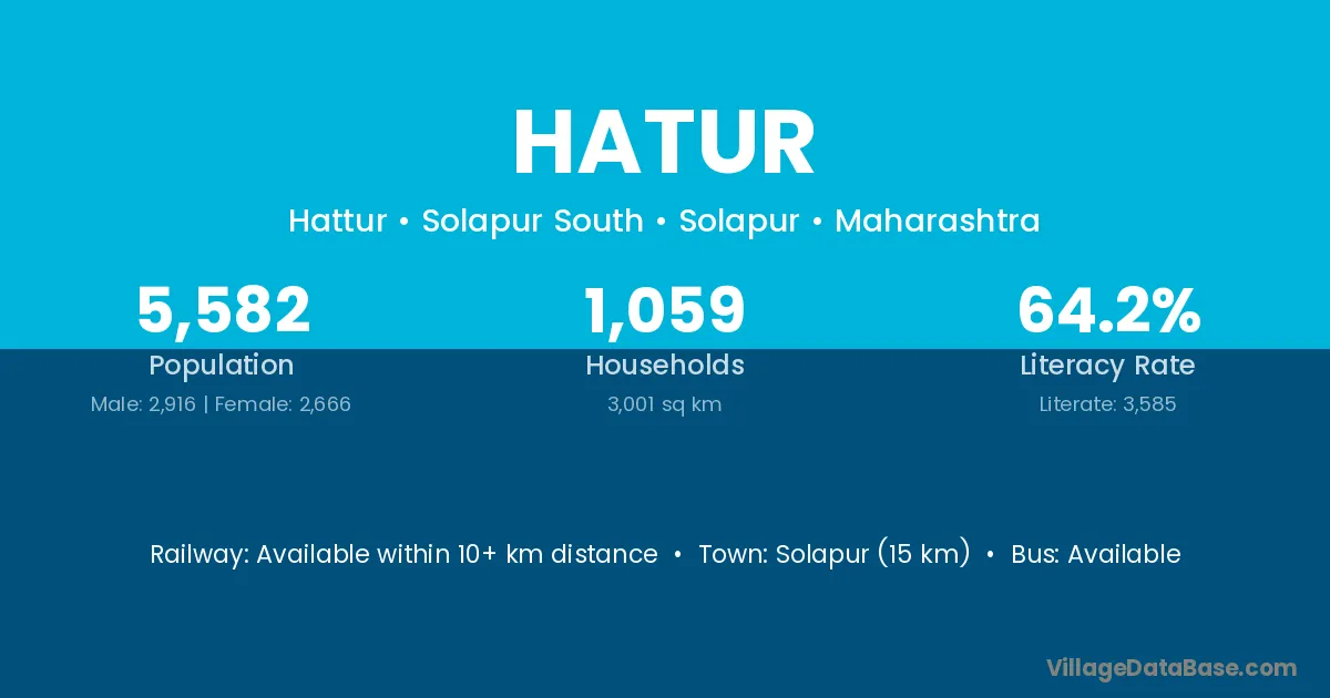 Solapur (15 km) is the nearest town to Hatur village for major economic activities and is located approximately 15 km away.