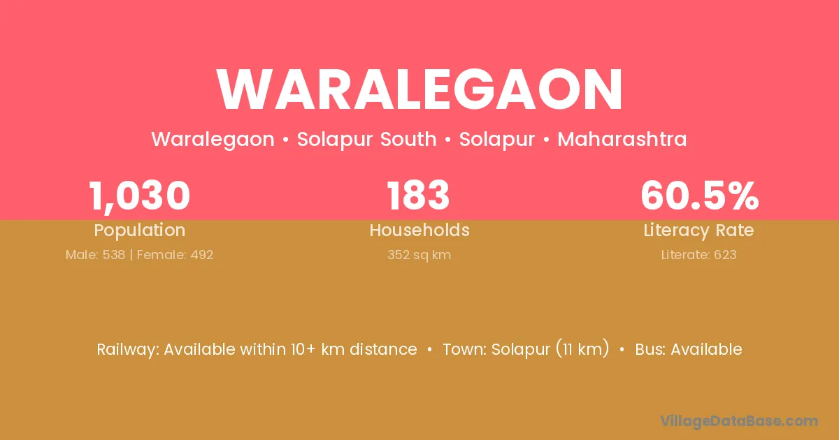 Solapur (11 km) is the nearest town to Waralegaon village for major economic activities and is located approximately 11 km away.