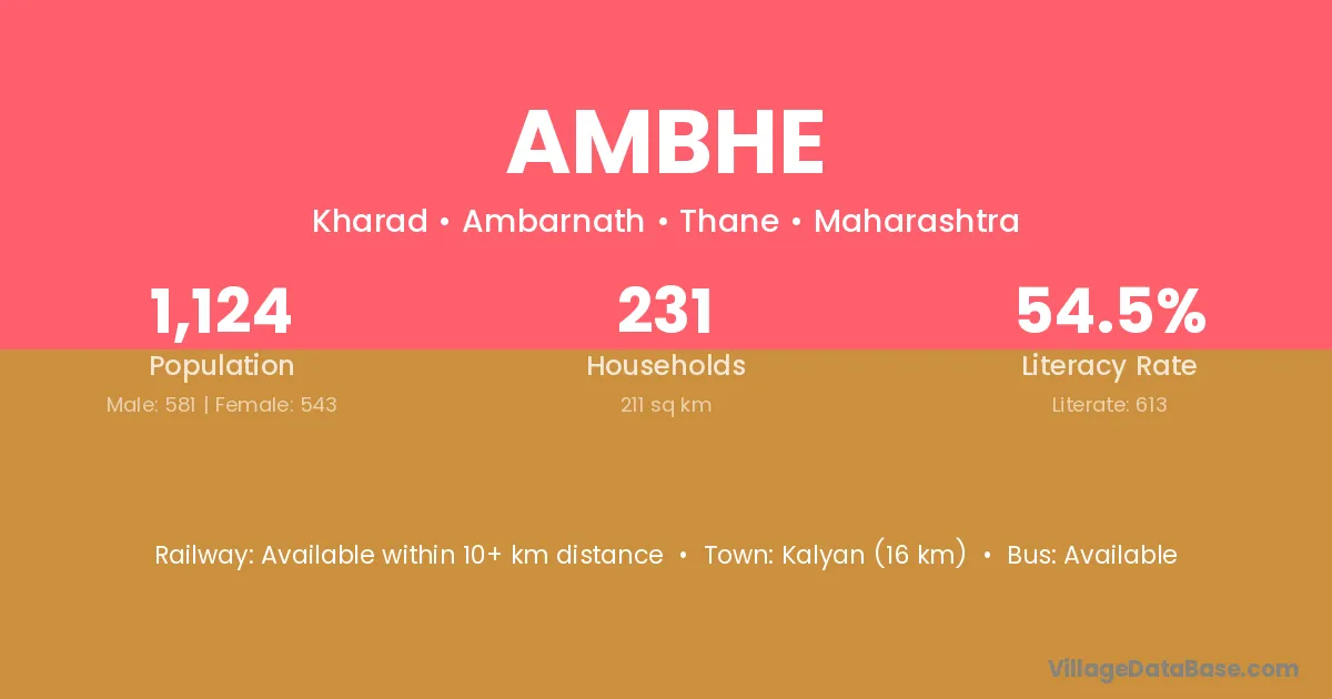 Kalyan (16 km) is the nearest town to Ambhe village for major economic activities and is located approximately 16 km away.