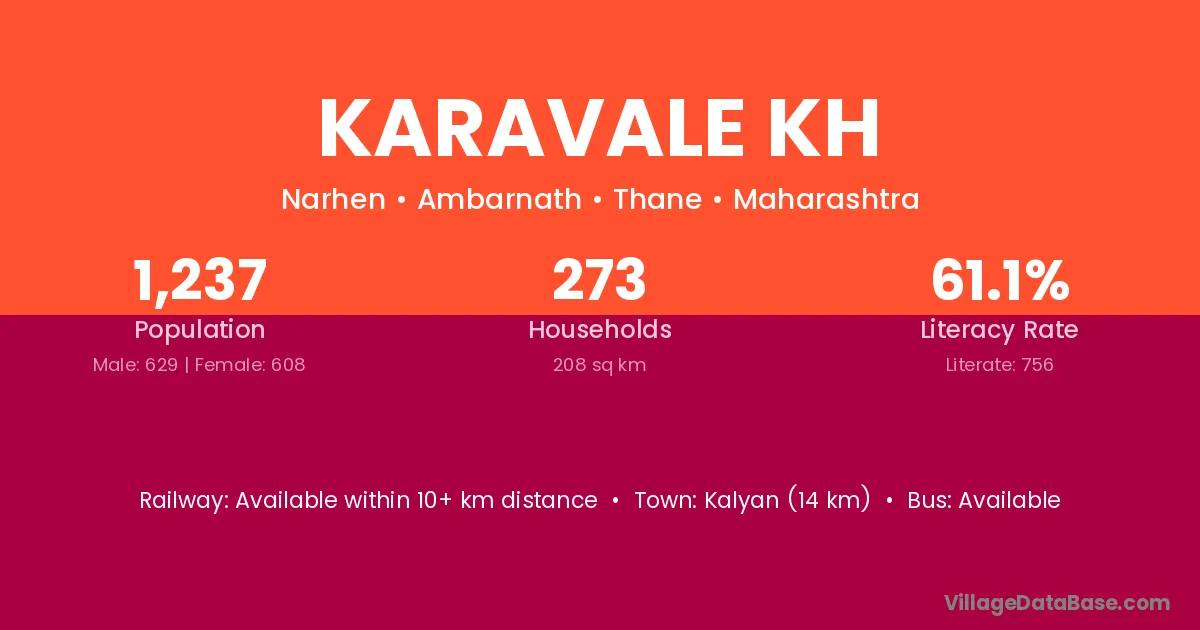 Karavale Kh village has a total population of 1,237 people, of which 629 are males and 608 are females.