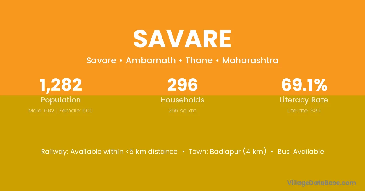 Badlapur (4 km) is the nearest town to Savare village for major economic activities and is located approximately 4 km away.
