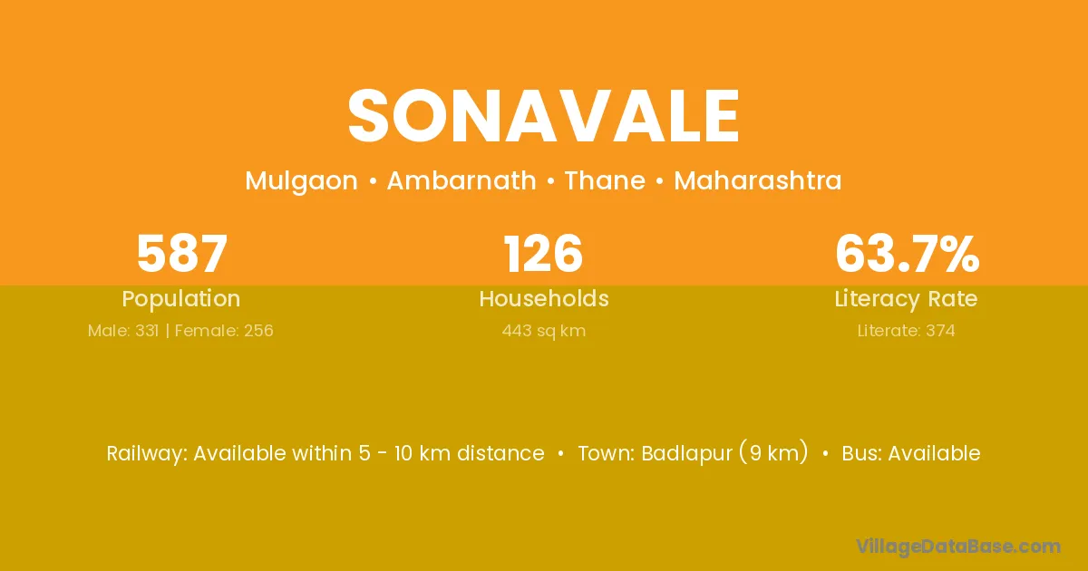 Badlapur (9 km) is the nearest town to Sonavale village for major economic activities and is located approximately 9 km away.