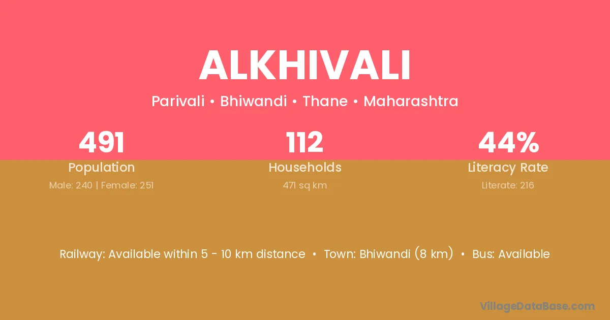 Bhiwandi (8 km) is the nearest town to Alkhivali village for major economic activities and is located approximately 8 km away.