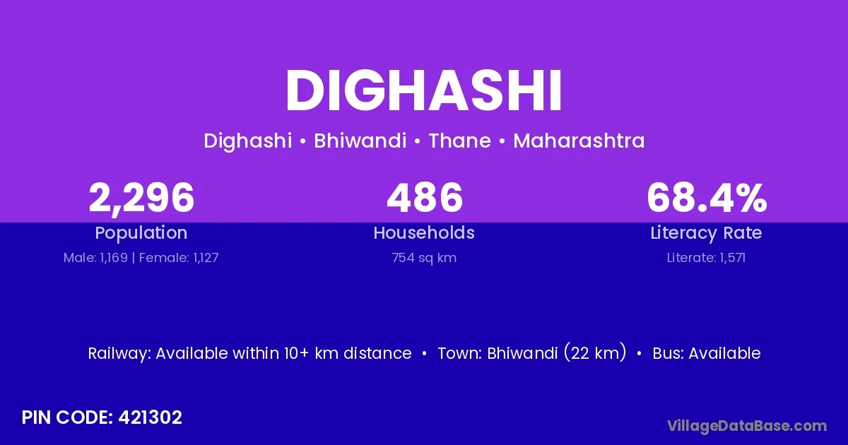Bhiwandi (22 km) is the nearest town to Dighashi village for major economic activities and is located approximately 22 km away.