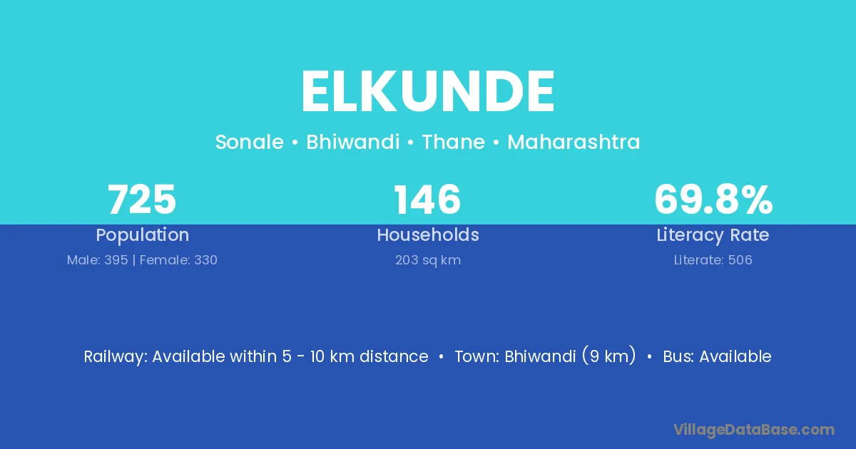 Bhiwandi (9 km) is the nearest town to Elkunde village for major economic activities and is located approximately 9 km away.