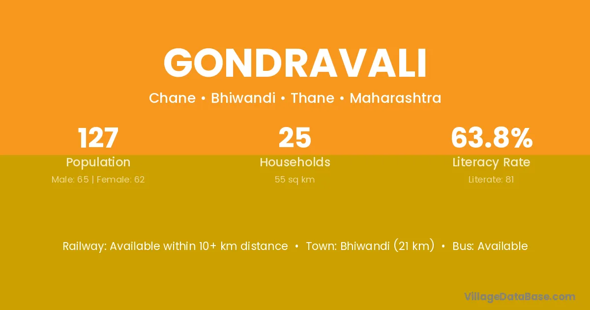 Bhiwandi (21 km) is the nearest town to Gondravali village for major economic activities and is located approximately 21 km away.
