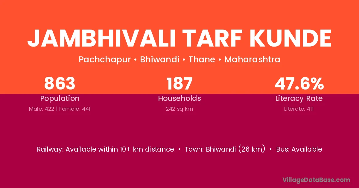 Jambhivali Tarf Kunde village has a total population of 863 people, of which 422 are males and 441 are females.