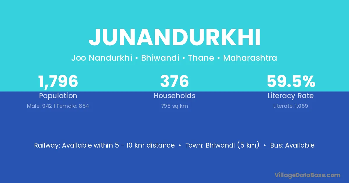 Bhiwandi (5 km) is the nearest town to Junandurkhi village for major economic activities and is located approximately 5 km away.