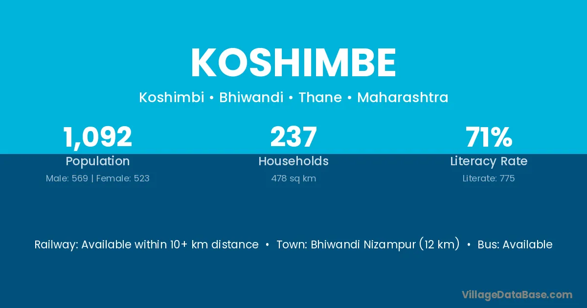 Bhiwandi Nizampur (12 km) is the nearest town to Koshimbe village for major economic activities and is located approximately 12 km away.