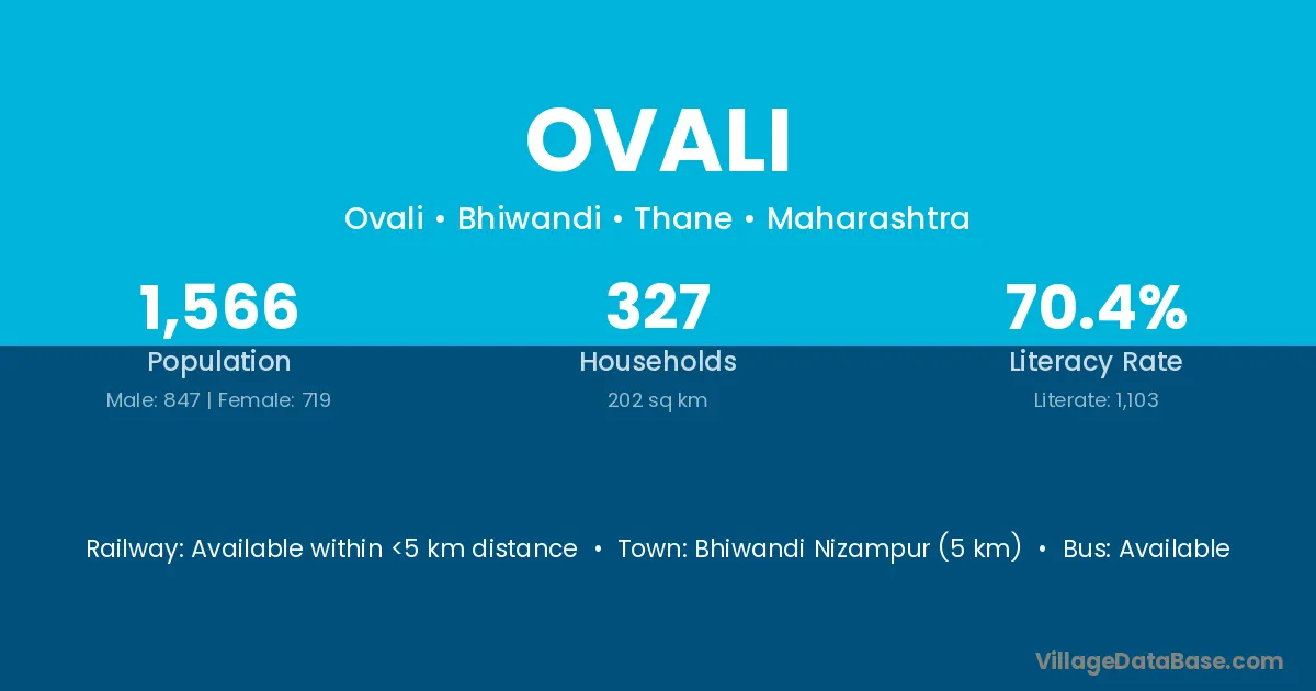 Bhiwandi Nizampur (5 km) is the nearest town to Ovali village for major economic activities and is located approximately 5 km away.