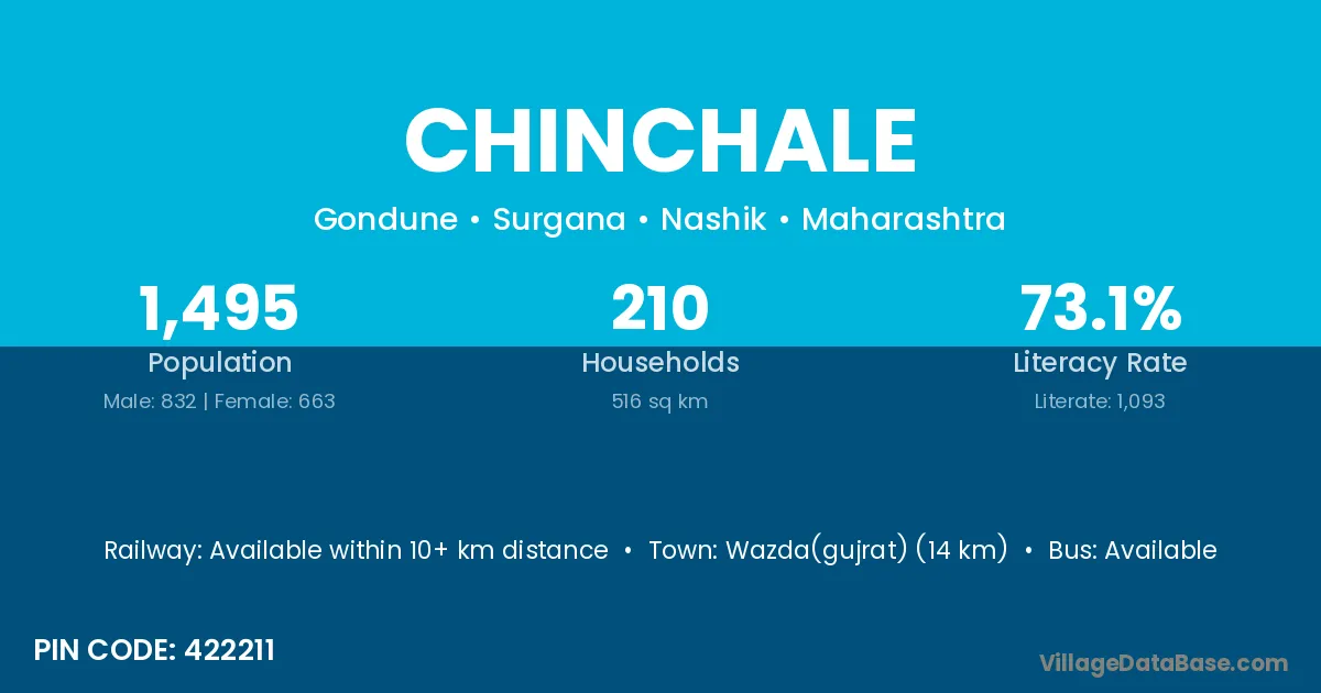 Dahanu (24 km) is the nearest town to Chinchale village for major economic activities and is located approximately 24 km away.