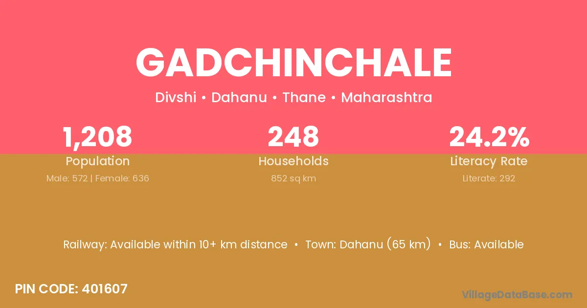 Dahanu (65 km) is the nearest town to Gadchinchale village for major economic activities and is located approximately 65 km away.
