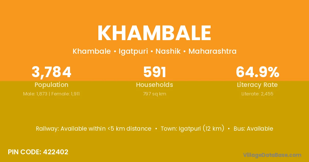 Dahanu (16 km) is the nearest town to Khambale village for major economic activities and is located approximately 16 km away.