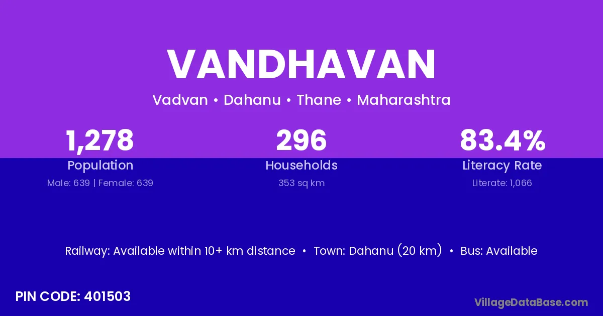 Dahanu (20 km) is the nearest town to Vandhavan village for major economic activities and is located approximately 20 km away.