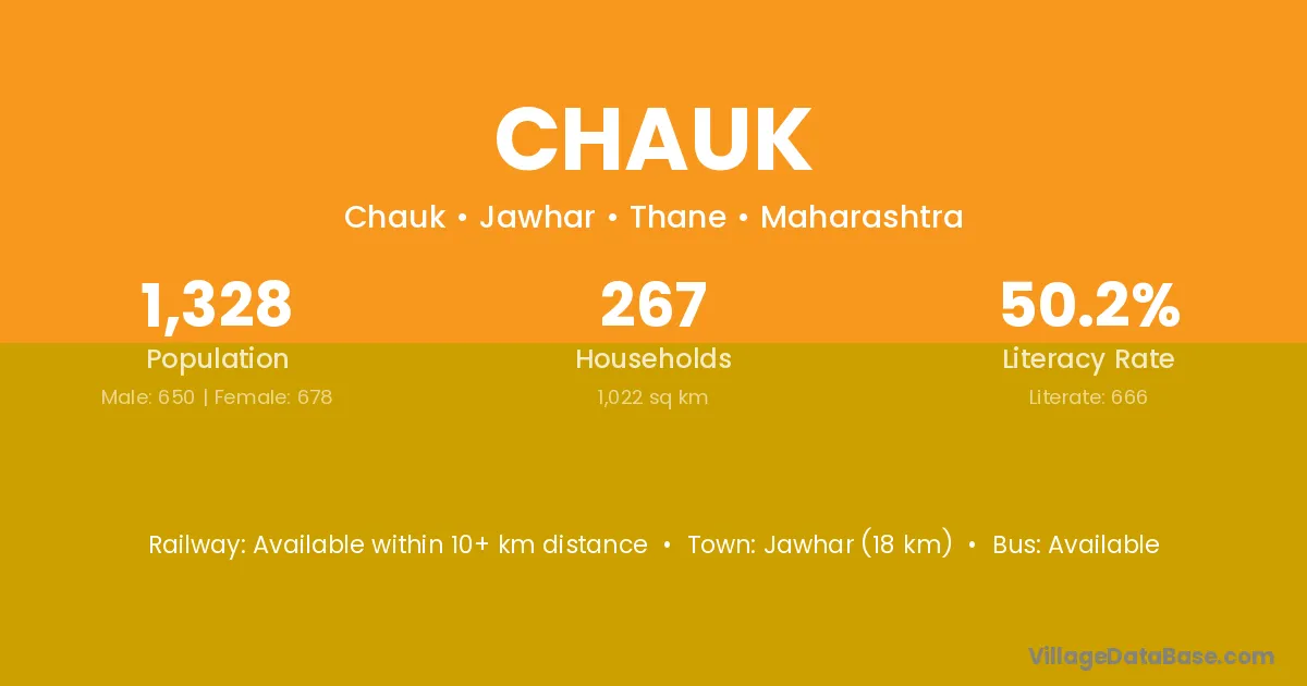 Jawhar (18 km) is the nearest town to Chauk village for major economic activities and is located approximately 18 km away.
