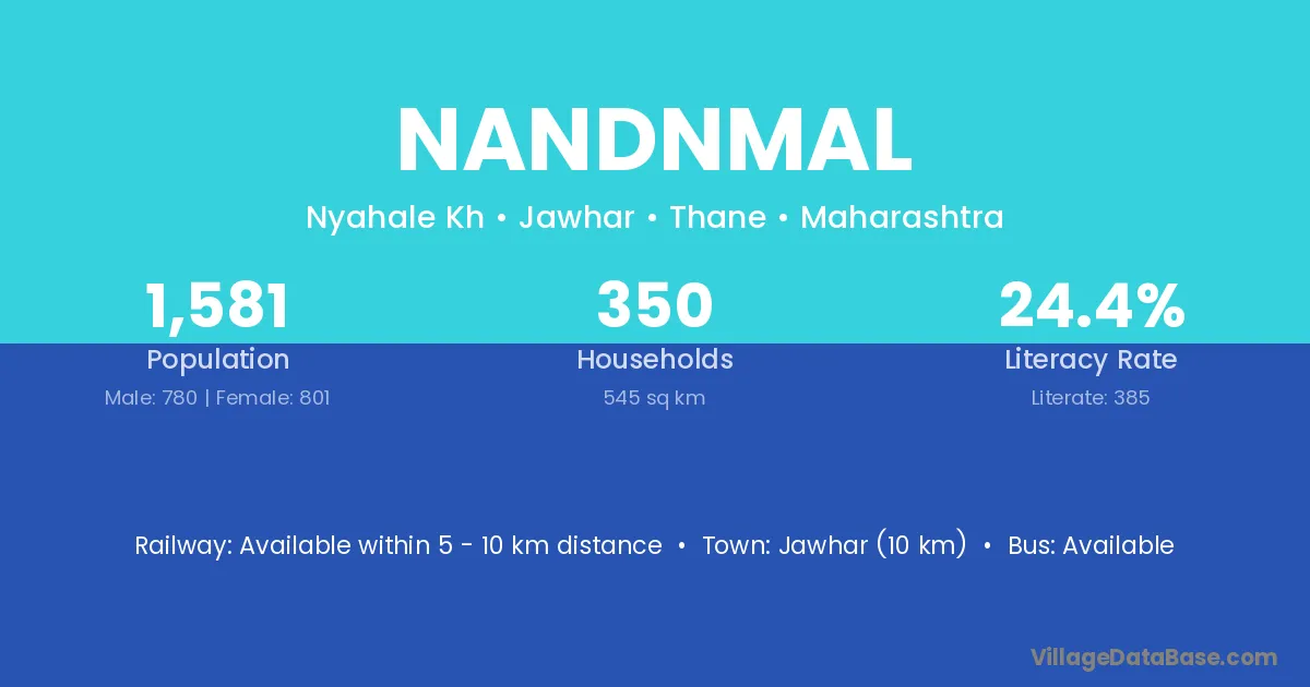 Jawhar (10 km) is the nearest town to Nandnmal village for major economic activities and is located approximately 10 km away.