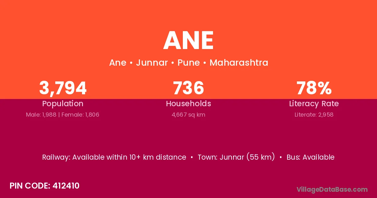 Kalyan (12 km) is the nearest town to Ane village for major economic activities and is located approximately 12 km away.