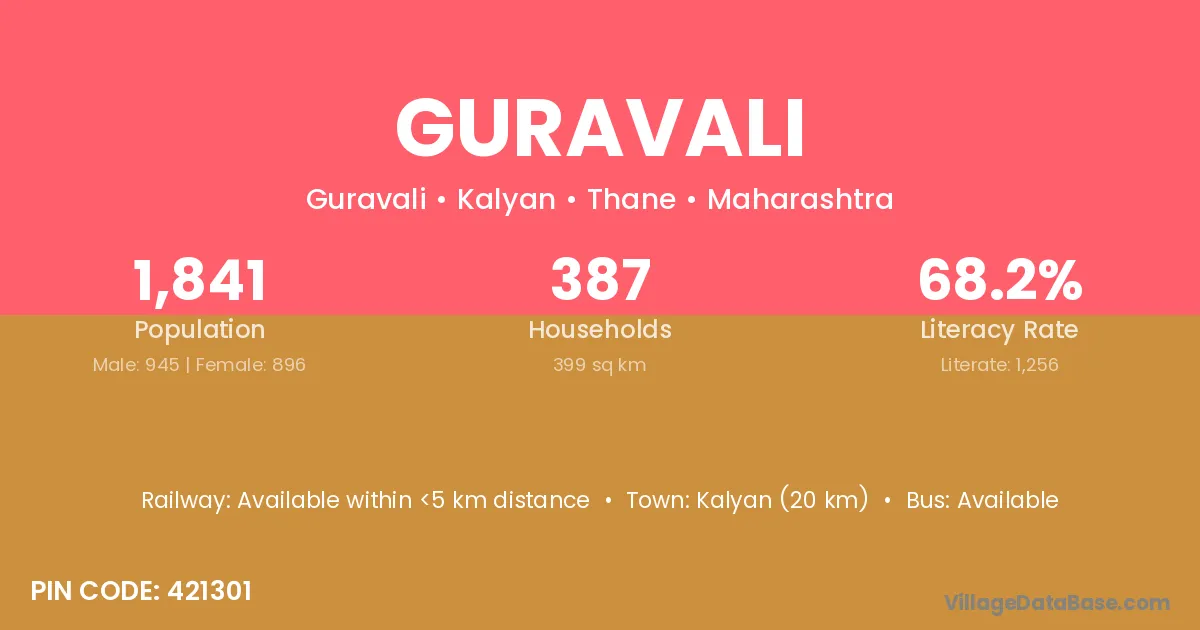 Kalyan (20 km) is the nearest town to Guravali village for major economic activities and is located approximately 20 km away.