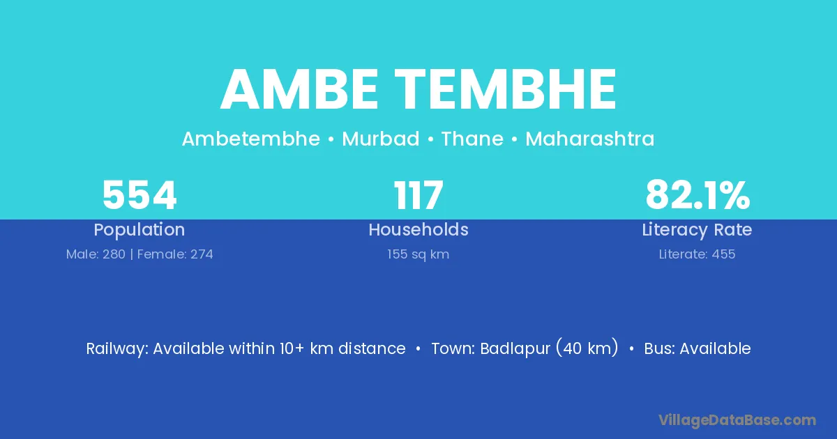 Ambe Tembhe village has a total population of 554 people, of which 280 are males and 274 are females.