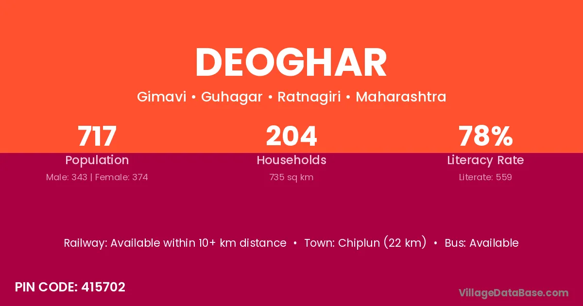 Kalyan (61 km) is the nearest town to Deoghar village for major economic activities and is located approximately 61 km away.