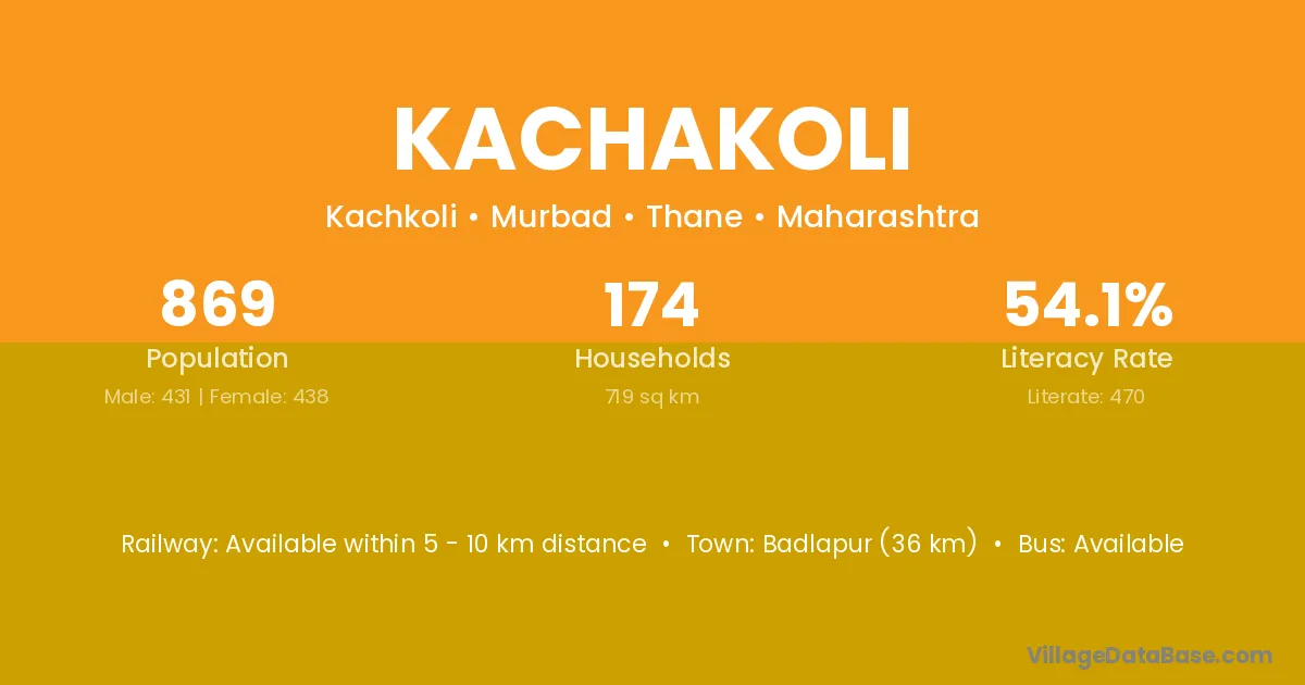 Badlapur (36 km) is the nearest town to Kachakoli village for major economic activities and is located approximately 36 km away.