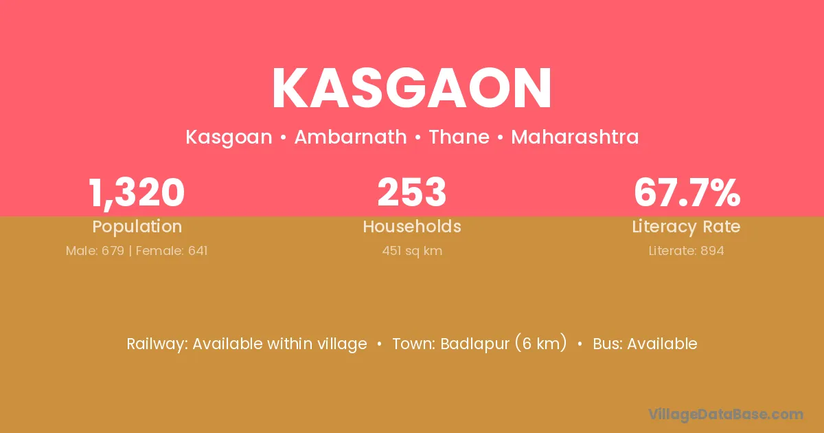 Kalyan (50 km) is the nearest town to Kasgaon village for major economic activities and is located approximately 50 km away.