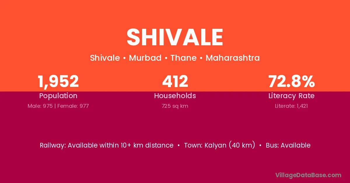 Kalyan (40 km) is the nearest town to Shivale village for major economic activities and is located approximately 40 km away.