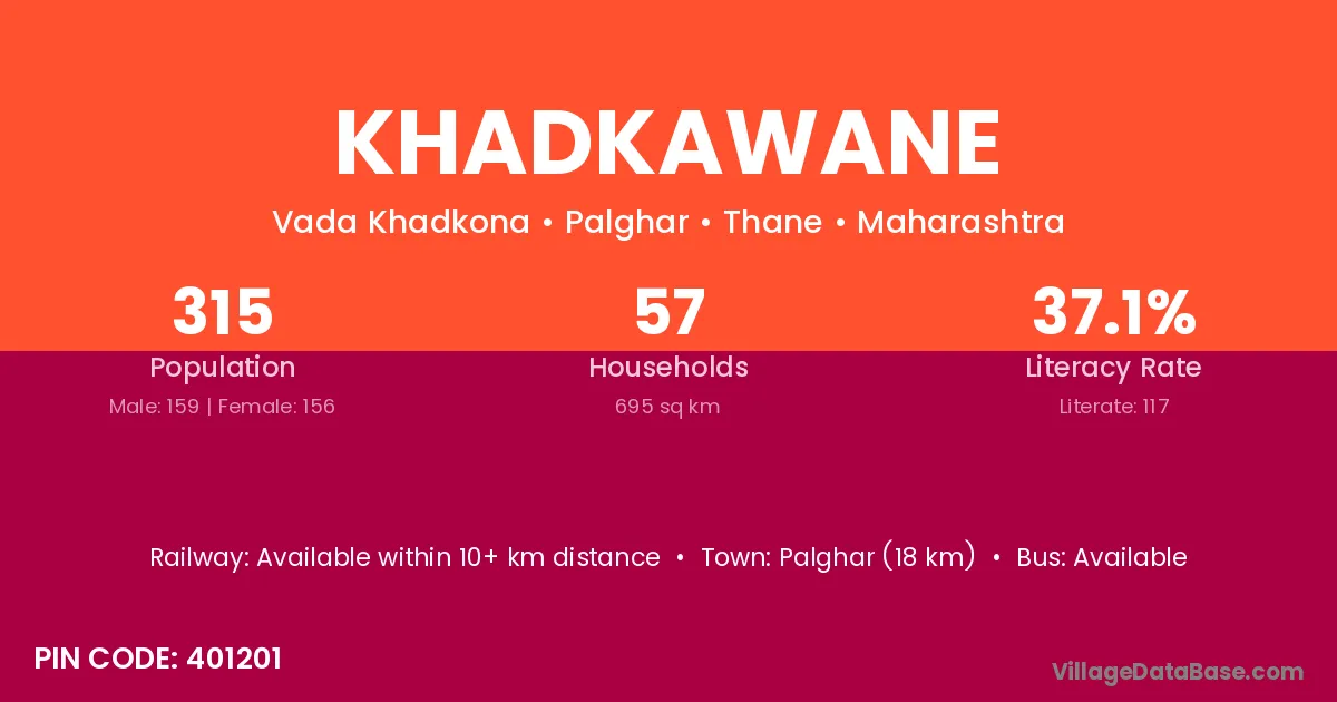 Palghar (18 km) is the nearest town to Khadkawane village for major economic activities and is located approximately 18 km away.