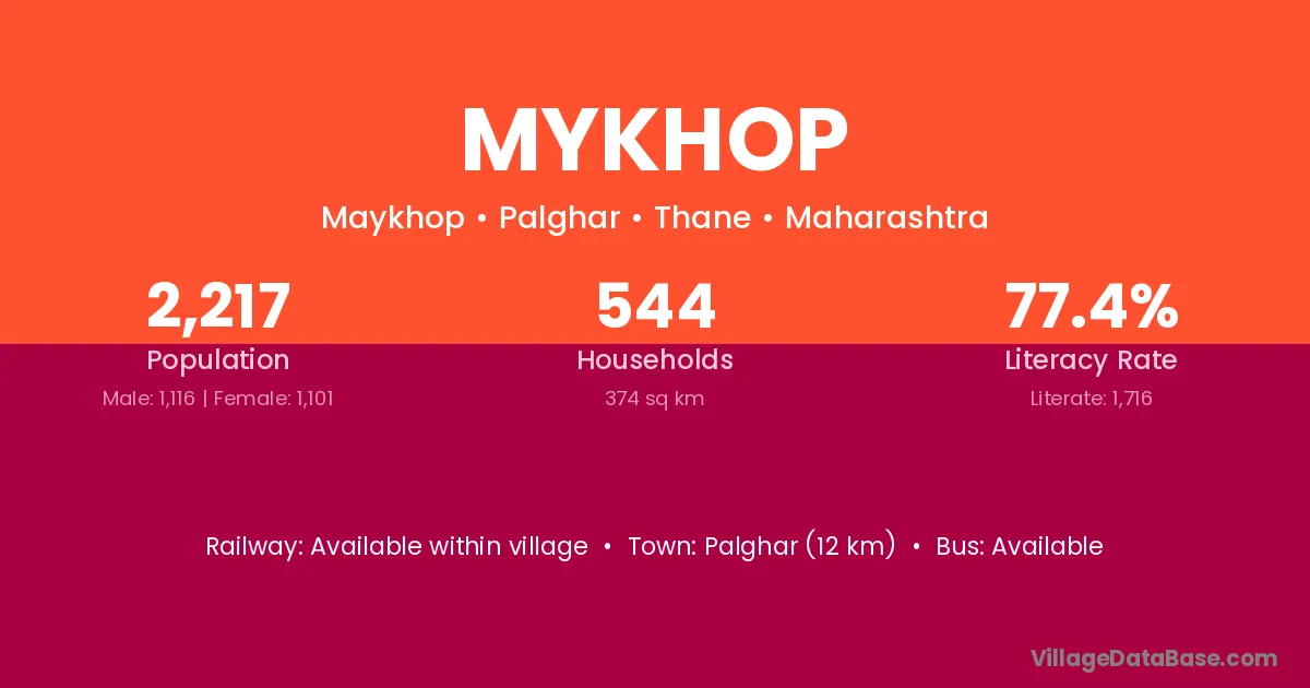 Palghar (12 km) is the nearest town to Mykhop village for major economic activities and is located approximately 12 km away.