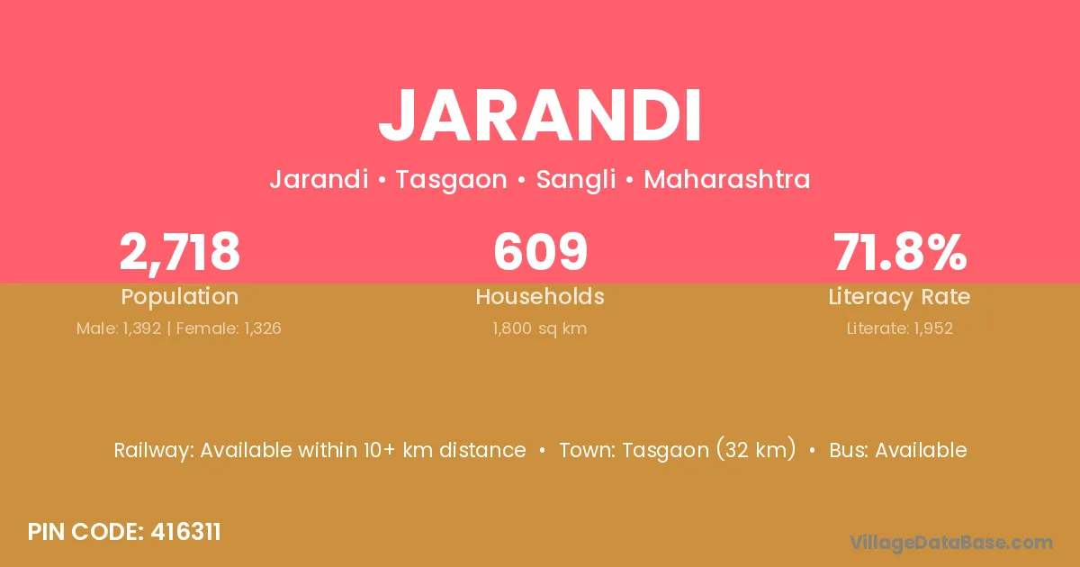 Jawhar (56 km) is the nearest town to Jarandi village for major economic activities and is located approximately 56 km away.