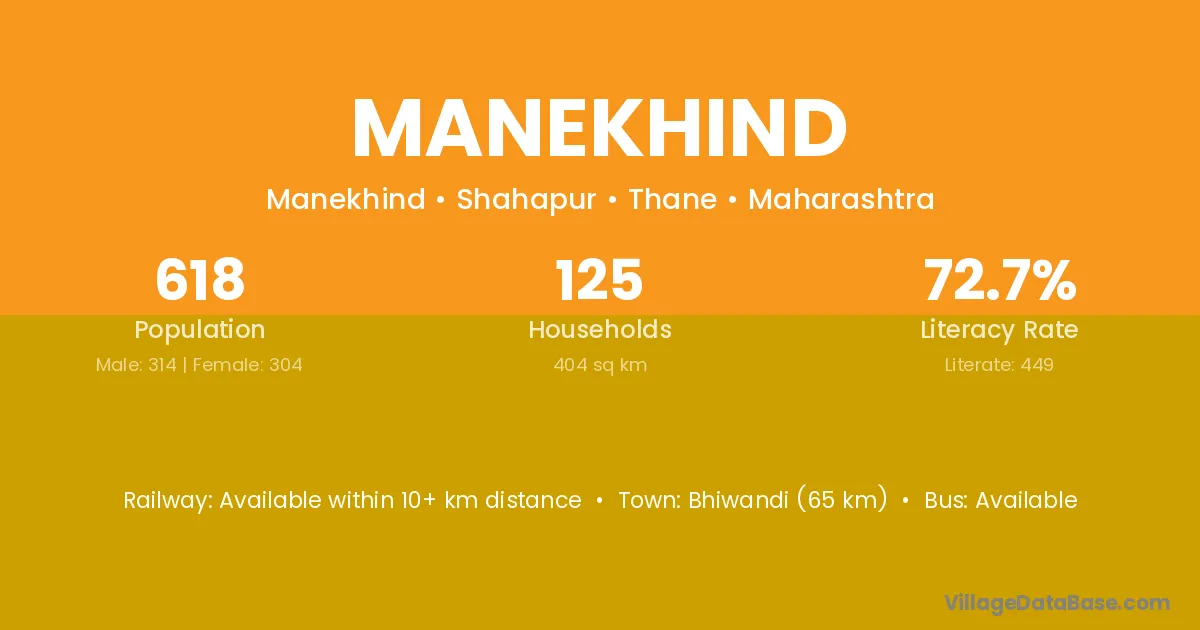 Bhiwandi (65 km) is the nearest town to Manekhind village for major economic activities and is located approximately 65 km away.