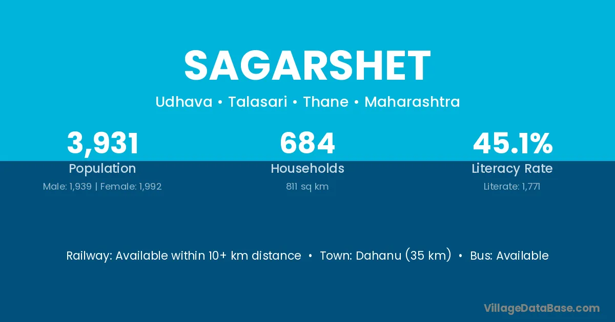 Dahanu (35 km) is the nearest town to Sagarshet village for major economic activities and is located approximately 35 km away.