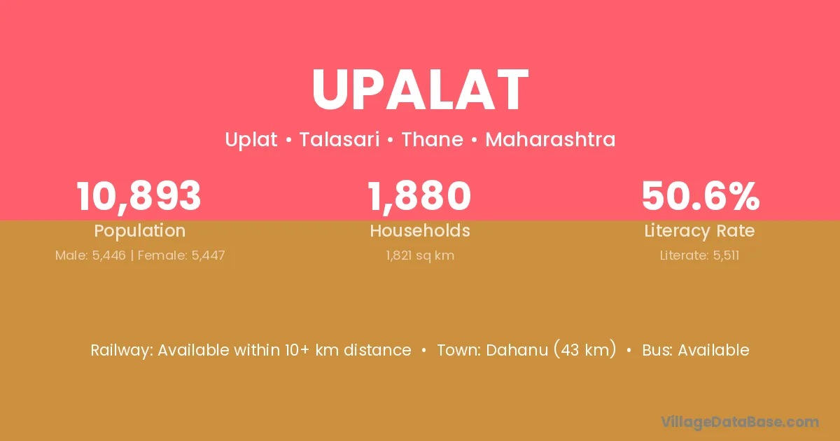 Dahanu (43 km) is the nearest town to Upalat village for major economic activities and is located approximately 43 km away.