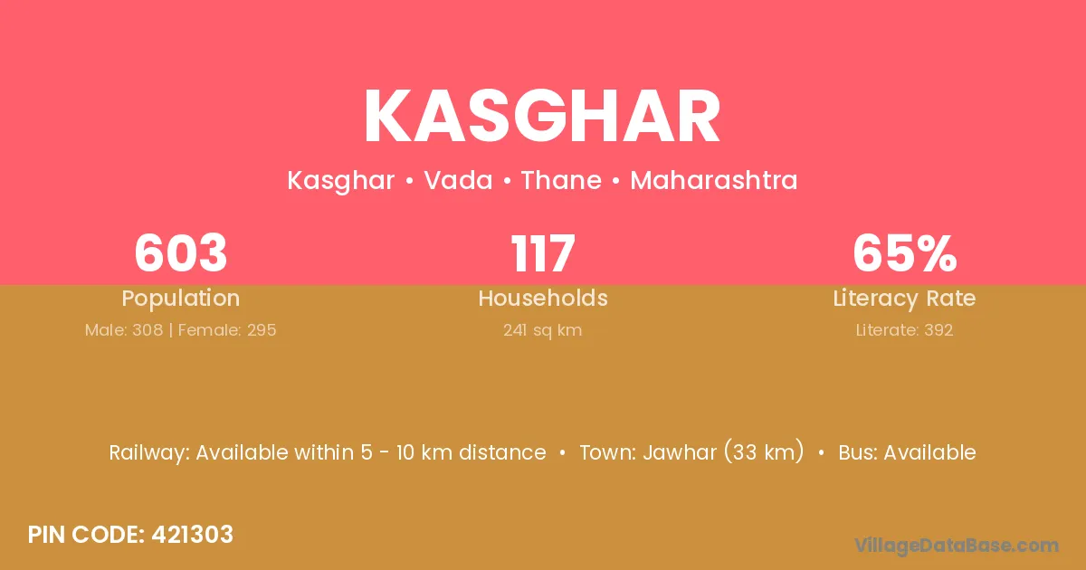 Jawhar (33 km) is the nearest town to Kasghar village for major economic activities and is located approximately 33 km away.