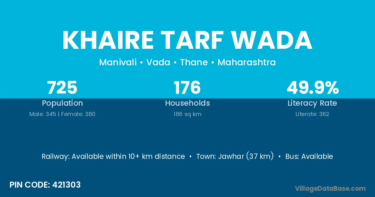 Khaire Tarf Wada village has a total population of 725 people, of which 345 are males and 380 are females.